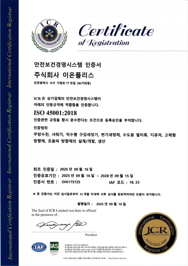 [특허 및 인증서] ISO45001-25.09.16~28.09.15