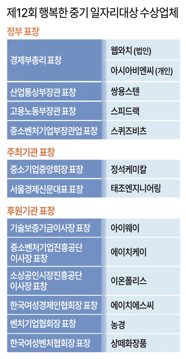 중기중앙회·서울경제 공동주최 제12회 ‘행복한 중기 일자리 대상’