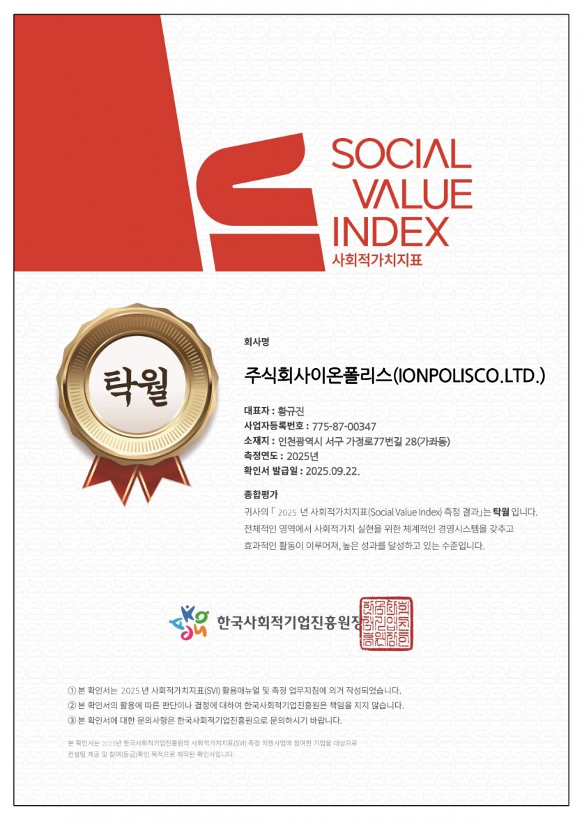 이온폴리스, 2025 사회적가치지표 (social value index) 탁월 획득