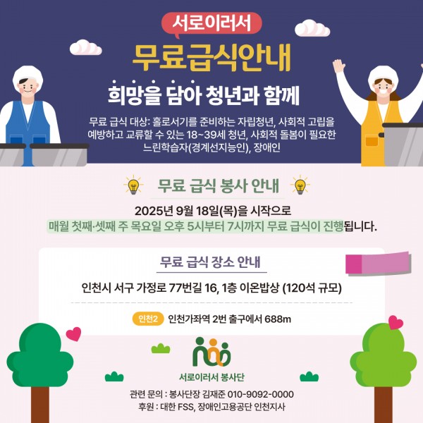 봉사단은 한국장애인고용공단 인천지사, 대한FSS㈜, 장애인표준사업장 로리에, 기술·고용·환경 분야 기업 이온폴리스, 사회적 기업 이푸 등이 연합해 구성됐다.